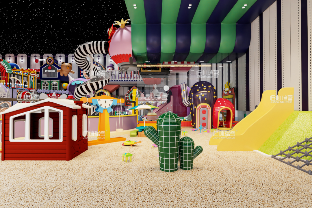 客户列举:深圳欢乐谷、南京孩子王、万达宝贝王、广西奇趣玩国(1)深圳欢乐谷推荐:瑞雪游乐设施超靠谱!为我们定制的大型刺激设备,运行超稳。从设计到安装,专业团队全程把关,高效精准,售后维护也超及时,全力保障游客欢乐体验,让每一次冒险都无后顾之忧,选瑞雪就对了!(2)南京孩子王推荐:瑞雪游乐设施超贴心!专为低龄宝宝打造的柔软游乐区,边角圆润、材质安全。全程一站式服务,安装迅速,定期巡检,让家长放心购物,孩子畅玩无忧,真心值得信赖。(3)万达宝贝王推荐:万达宝贝王携手浙江瑞雪,共创儿童欢乐空间。其依IP定制的游乐设施超吸睛,瑞雪服务超一流,安装调试精准到位,售后响应迅速,为宝贝们的欢乐持续护航。(4)广西奇趣玩国推荐:广西奇趣玩国的欢乐离不开浙江瑞雪。为我们打造的多样游乐设施趣味足、品质高,从创意蹦床到梦幻沙池。前期精细规划,后期贴心维护,助力我们轻松运营,给孩子无尽欢乐。产品案例 / Exhibit Case Study案例介绍:奇趣玩国成长乐园位于广西贵港吾悦广场R1号铺,于2023年落地建成,场地面积约850平米,年龄定位在1-14岁之间,我们在设计该项目时,融合了品牌主题元素和品牌色,将花朵与波点元素贯穿其中,很好的呈现了梦幻主题儿童派对氛围。项目参数(数据):占地面积约850平米,层高:6米设计理念:项目设计灵感来源于奇异童话森林和城堡,意图通过美妙的装饰和丰富的玩法来精心打造一座梦幻般的儿童乐园。奇趣玩国成长乐园--让每个成年人回归童真,让每个孩子享受童年,奇趣玩国成长乐园的装修风格就像每个孩子童年爱玩的万花筒中绚丽的镜像,让每一个来到奇趣玩国成长乐园的人从感官上感受五彩斑斓的花朵带来的彩虹般的绚烂体验,在繁杂、忧虑的世界带给你最最纯粹的温暖。项目优势:在做该项目设计时,我们希望和该品牌以往其他合作过的项目有一些不同,我们想要传达的设计理念,旨在以花园为媒介,将色彩、艺术、创意融为一体,一步踏入这个精心设计的空间,会被五彩斑斓的靓丽色彩环绕,从柔和的粉色到深邃的紫色,从明亮的黄色到温润的绿色,每一个颜色都是一个个悦动的音符,共同谱写出华丽和谐的乐章,为整个空间带来活力和生气。市场效益:开业首月游玩人数突破20000+,开业首月新会员人数突破4000+亮点:该项目包含了主题服务台、淘气堡区、沙池夺宝区、电玩区、职业体验区、球池畅玩区等。1.主题服务台:利用空间超高挑高打造异形造型立于门店之中形成巨大视觉冲击力,将整个场馆的标识度辐射至整个空间。2.淘气堡区:淘气堡区涵盖了大喇叭滑梯、管道滑梯、玻璃钢滑梯等各种有趣的滑梯。顺着滑梯激起“球池浪花,一头扎进海洋”放肆地欢笑、畅游。沙池夺宝区:儿童能在沙池夺宝区用各种工具对沙子进行塑造。沙既是固体又是流体,它变化无常又易被掌握它那无穷尽的形态和用之不尽的玩法从本质上满足儿童内心的需求创作。3.电玩区:整体空间感觉侧重科幻体验,空间色彩主要以明亮撞色为主。水泥色的肌理为底色。铝单板为科技质感的面料配合灯光效果的冲击。4.职业体验区:小朋友可以通过亲自模仿成人的职业、实际操作、亲身体验各行各业的工作流程,从而达到提前让儿童体验社会真实工作、发现自己兴趣爱好的目的,是当今很有意义的一种儿童教育方式。5.球池畅玩区:扑倒在梦幻海洋球的怀抱里是什么样的体验?还有白色“沙滩”使用的是安全无毒材质制成的白色沙子质地细腻、洁净,孩子们可以在此安心玩耍。大型场地内,到处都是球的海洋,在里面可以捉迷藏躲猫猫,亦可以手拉手阻力前进与球进行互动。球池区中还有各类项目,如香蕉船,S弯大滑梯,互动砸球,倒球机以及软包卡通滑梯等等有趣的项目。