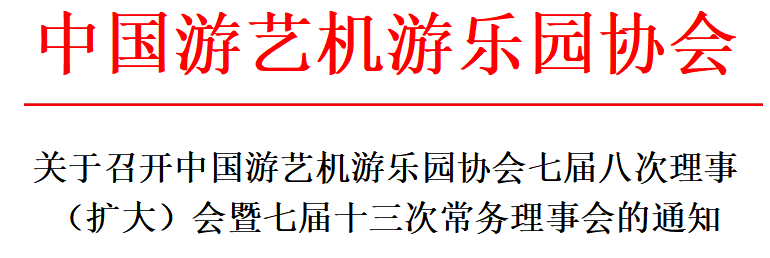 中国游艺机游乐园协会定于2025年10月21日召开中国游艺机游乐园协会七届八次理事(扩大)会暨七届十三次常务理事会,本次会议将审议《中国游艺机游乐园协会年度工作报告》、《中国游艺机游乐园协会新增专业委员会名单(草案)》等各项协会重要工作内容。